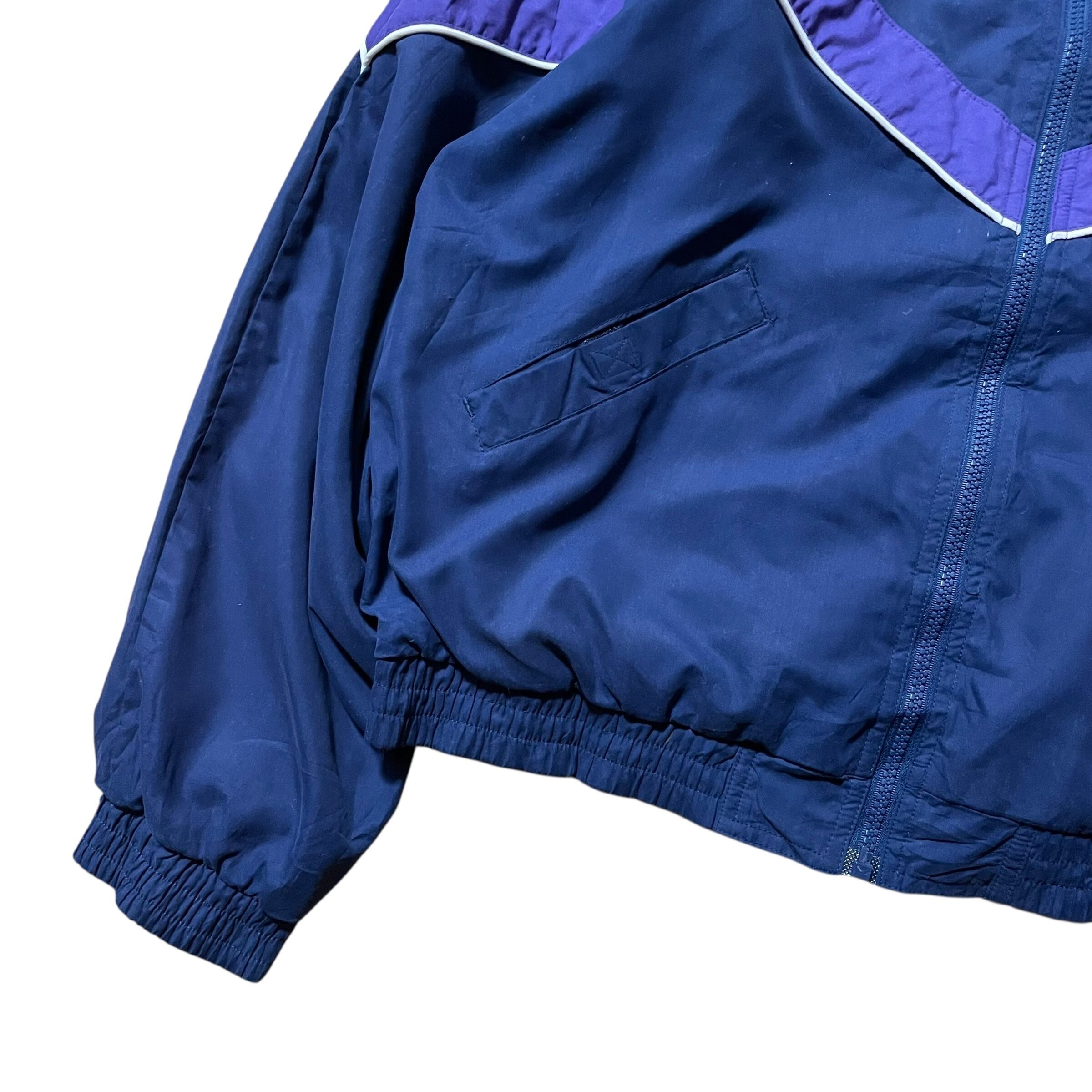 ネイビーベースにパープルの切り替え、ホワイトのパイピングが効いた、いかにも90sらしい配色です。
