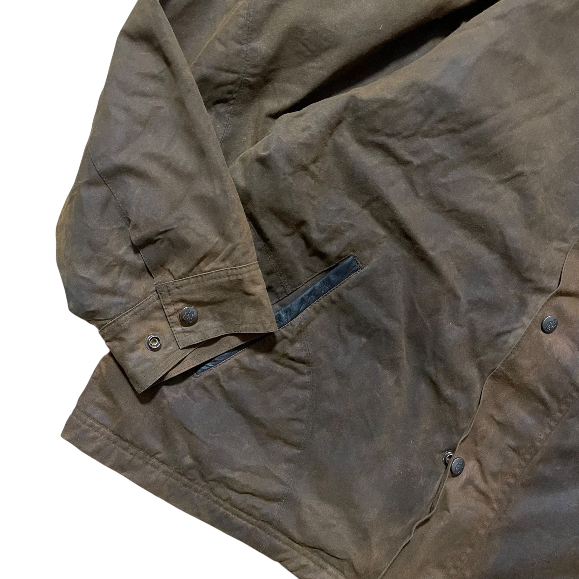 USED。オイルドジャケット特有の色ムラやシワ感あり。